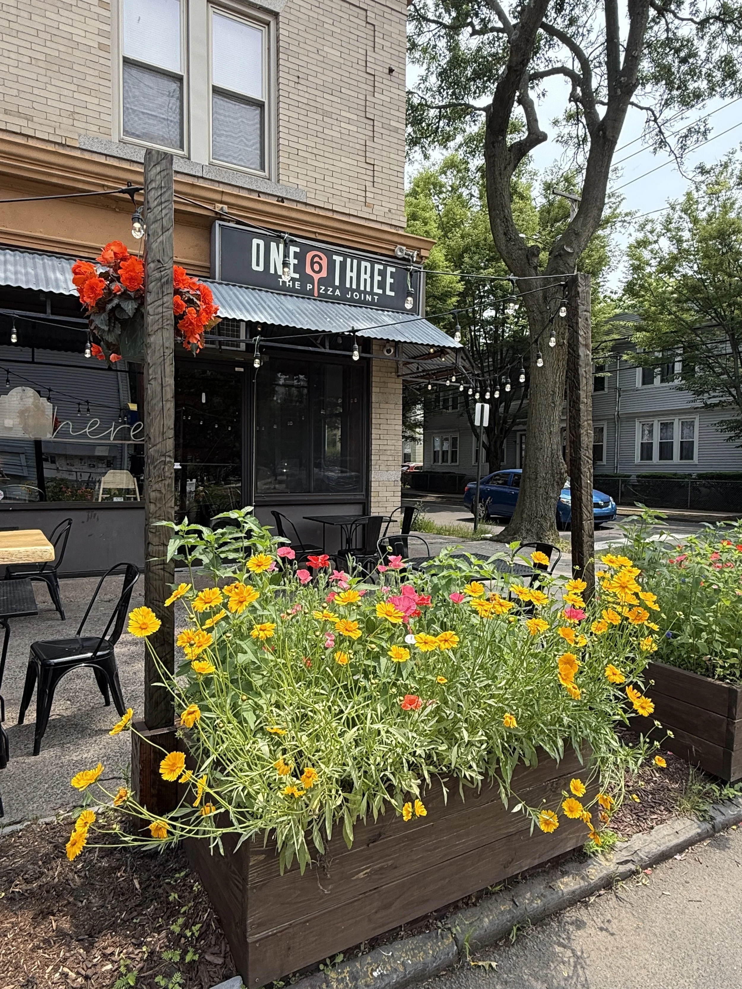 There are four large raised beds in front of 163 Pizza Joint, 2 in front of Bubble and Squeak laundry, and several smaller boxes in the curb strip that run alongside the vacant lot on Foster.