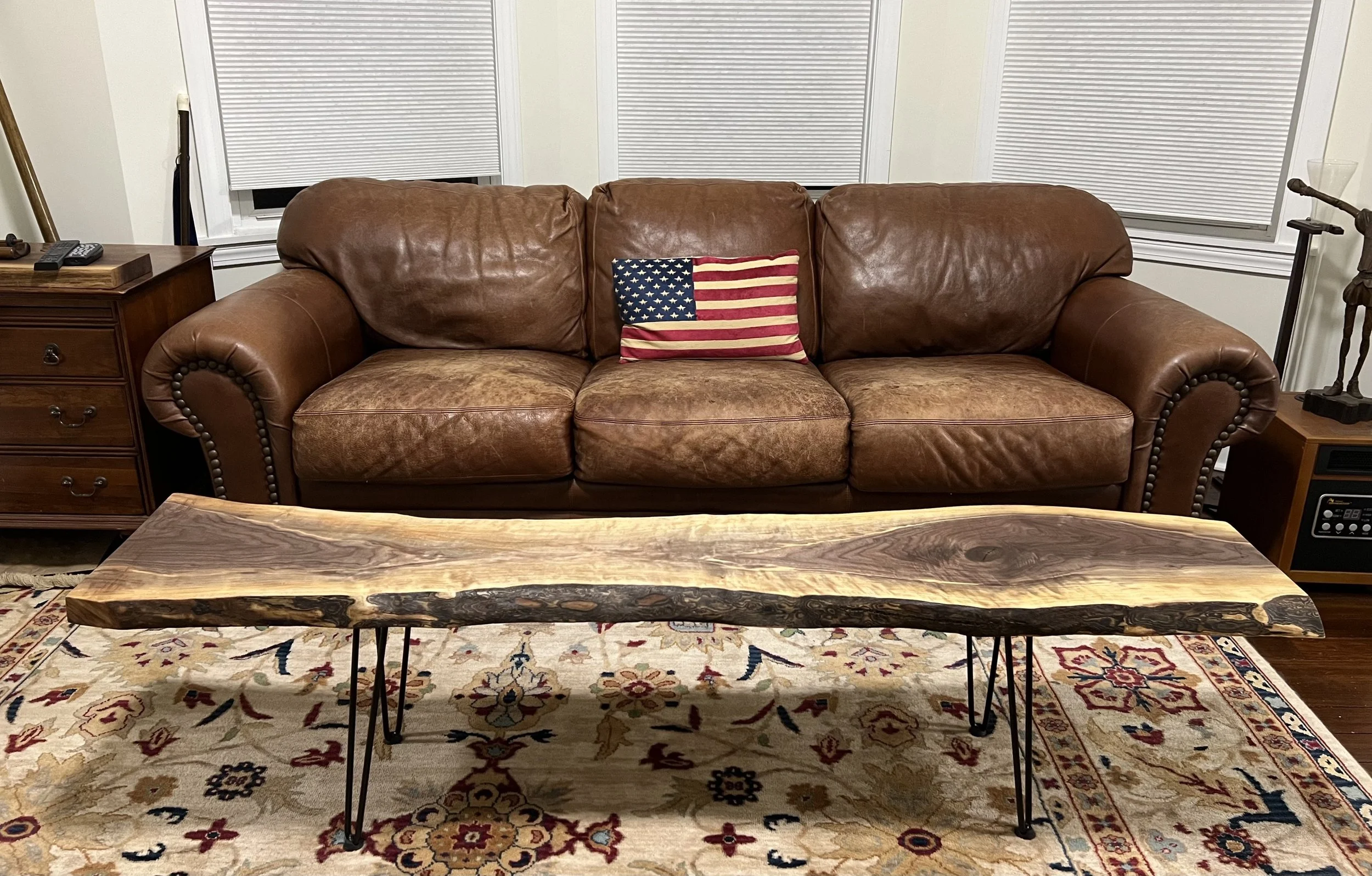 This Black Walnut was milled in Hamden at Eli Whitney’s historic home on Hartford Turnpike in 2021. Finished with a high gloss poly to withstand use as a coffee table. (Approx. 40x16x16)