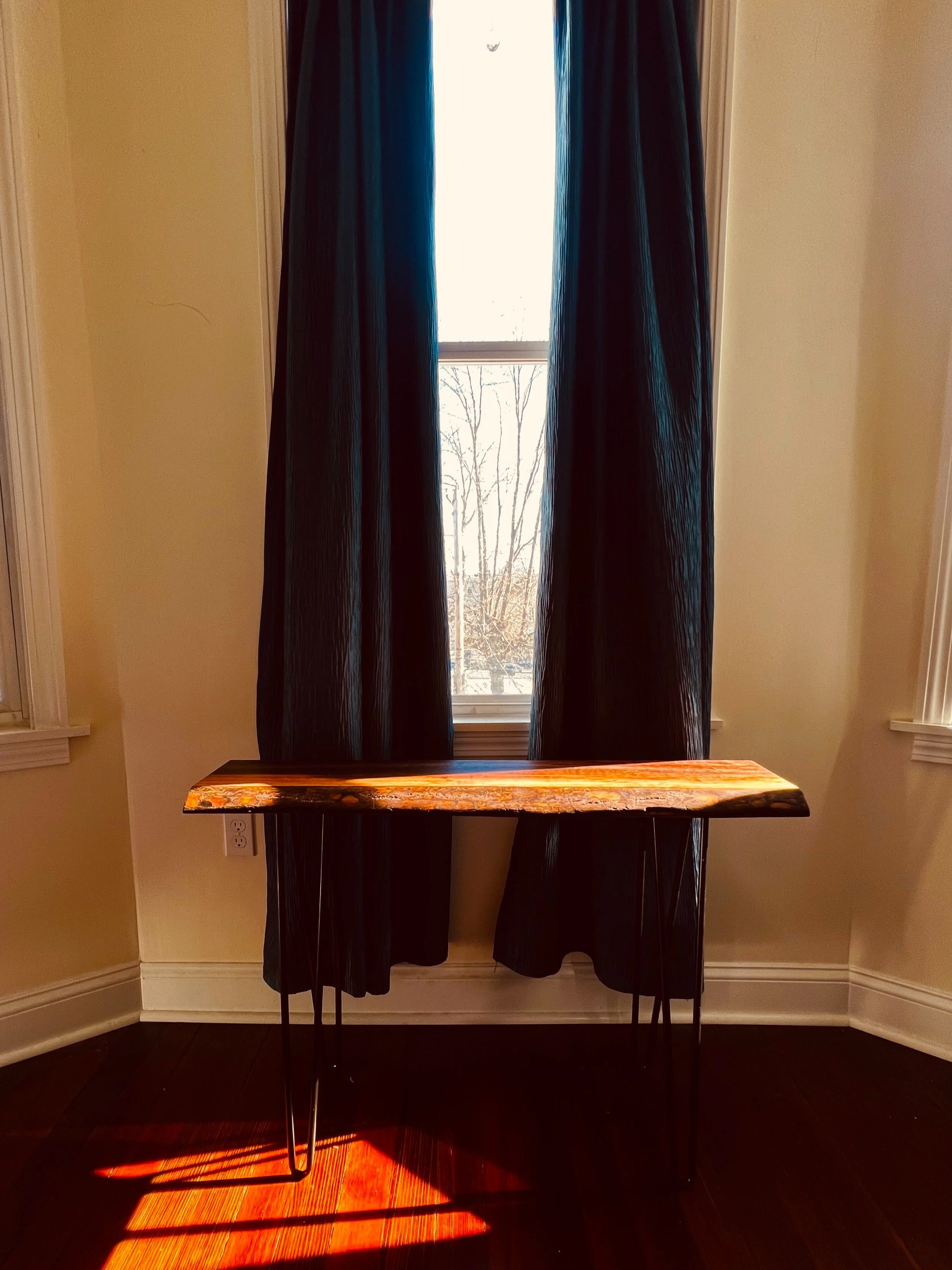This console table was inspired by the bay windows commonly found in East Rock apartments and homes. (H: 28 L: 40 W: 8)